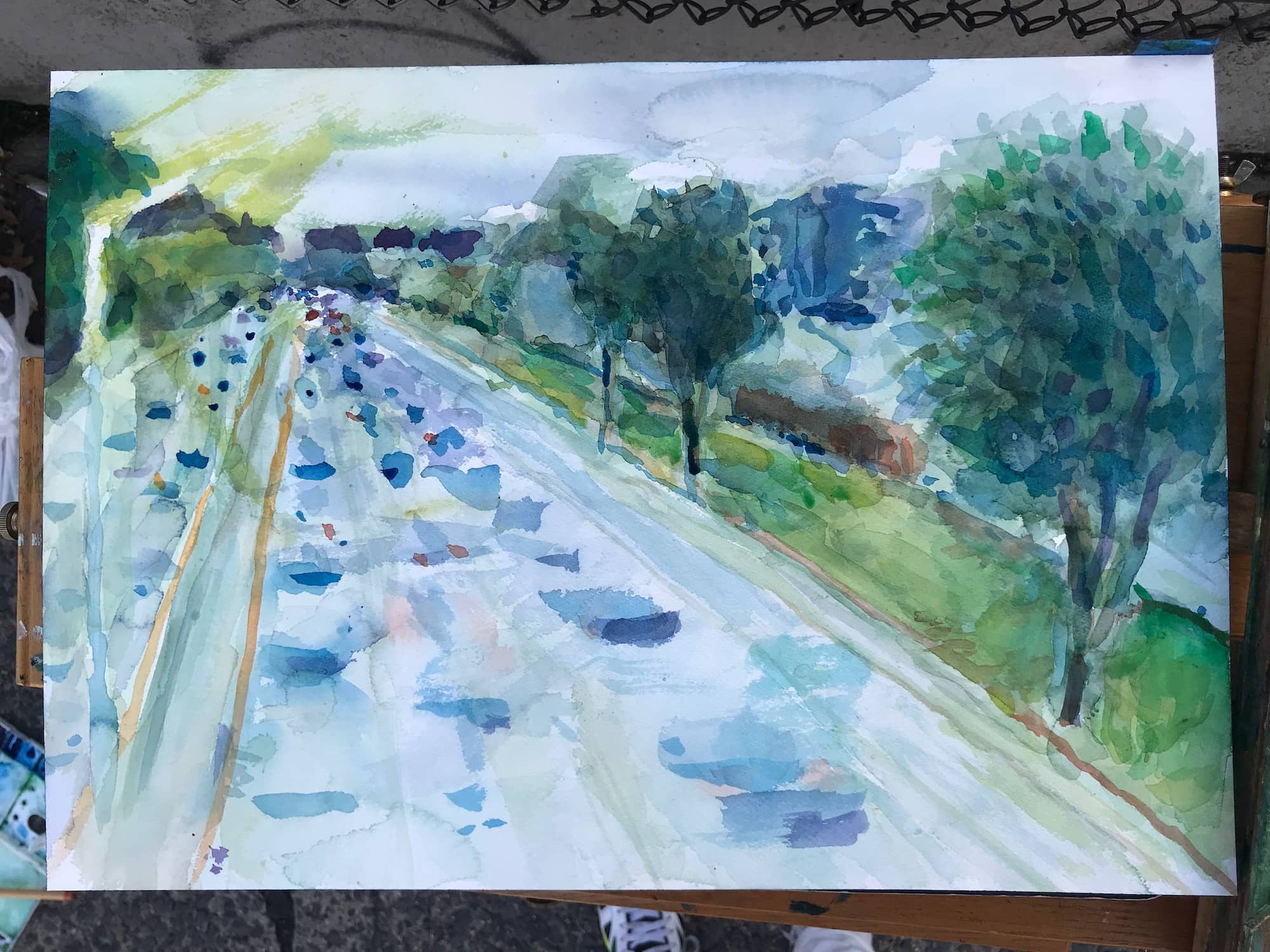 #watercolor #daylightingtibbettsbrook #bronxart #bronxartist #northwestbronx #painter #bronxlandscape #streamdaylighting