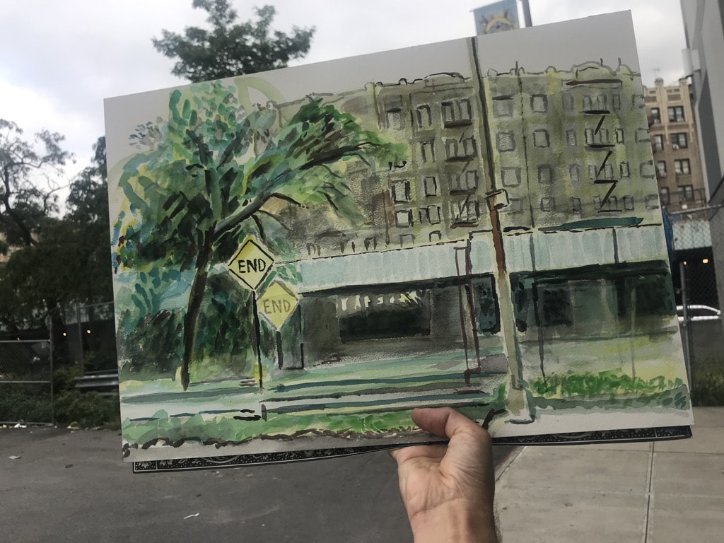 He told me how he has work in the Bronx Museum now. We had a wide ranging conversation, from the perils of social media “It’s leading to war” to his experience working as a gang mediator. He wants to get into carving wood because there is so much free wood around here, but his wife is worried about the space in the apartment. He told me about a painting he is working on—about a big waterfall, and the title had something to do with god or divinity. I told him about the Daylighting Tibbetts project and he gave the cynical New Yorker response. “Yeah well” – like “I’ll believe it when I see it.”