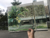 At a certain point I was aware that someone was watching from inside the parking garage. He asked me if he could see the painting in Spanish, and it took me a second to understand.